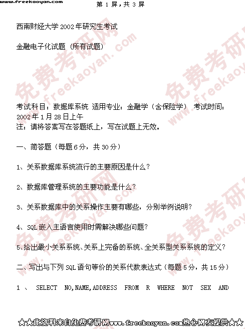 西南财经大学2002年考研真题-金融电子化试题(所有试题)