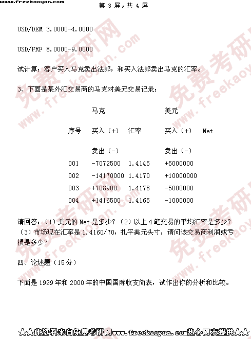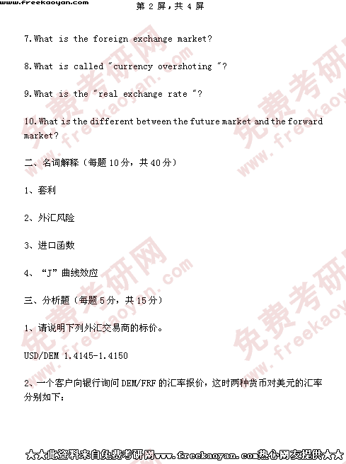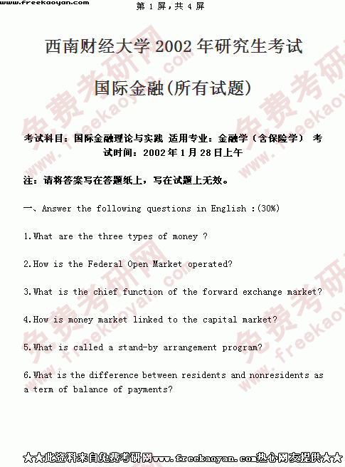 西南财经大学2002年考研真题-国际金融(所有试题)