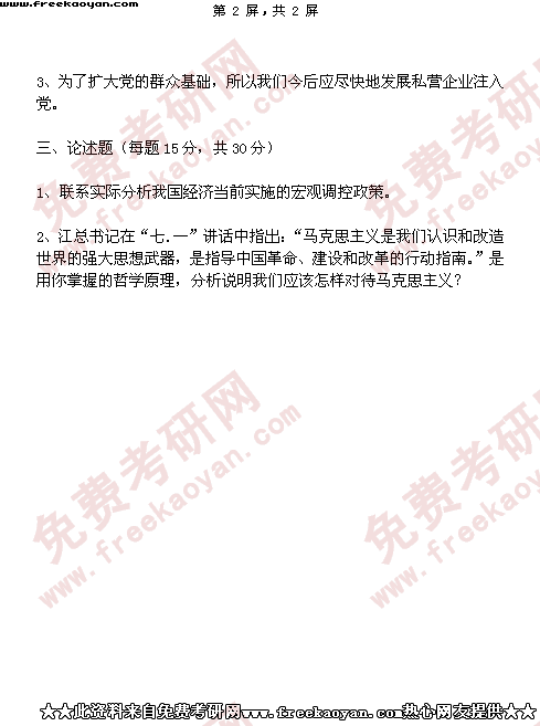西南财经大学2002年考研真题-国民经济学(所有试题)