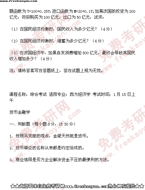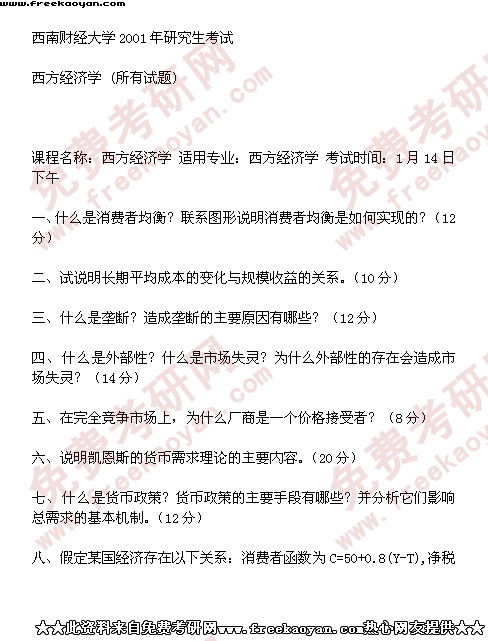 西南财经大学2001年考研真题-西方经济学(所有试题)