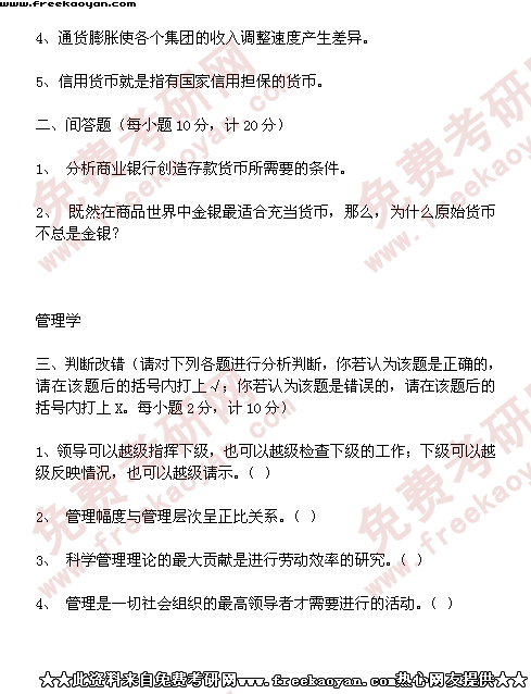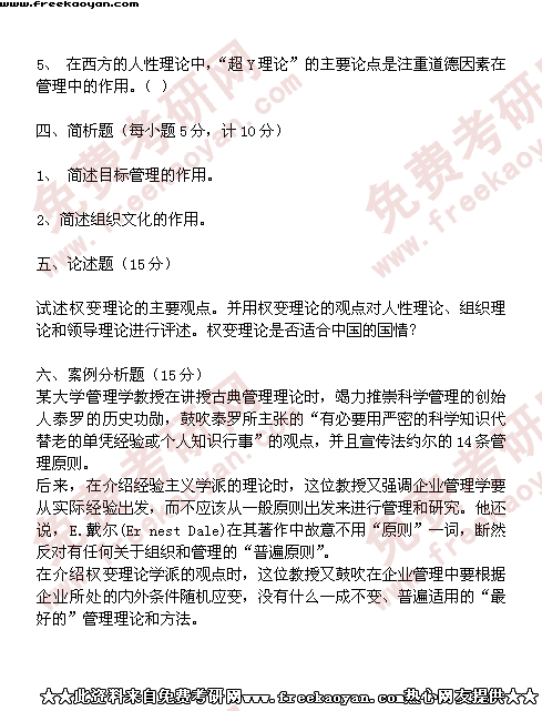 西南财经大学2002年考研真题-管理学试题(所有试题)