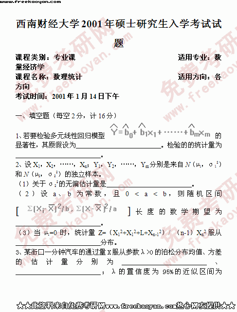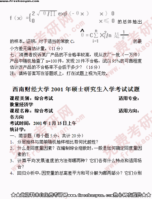 西南财经大学2002年考研真题-MBA试题(所有试题)