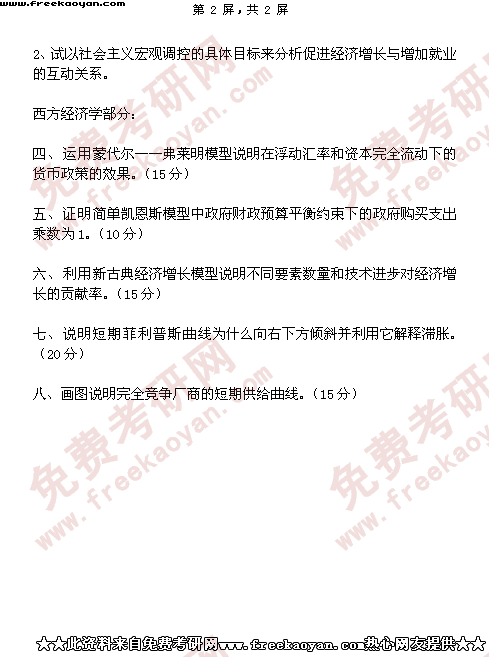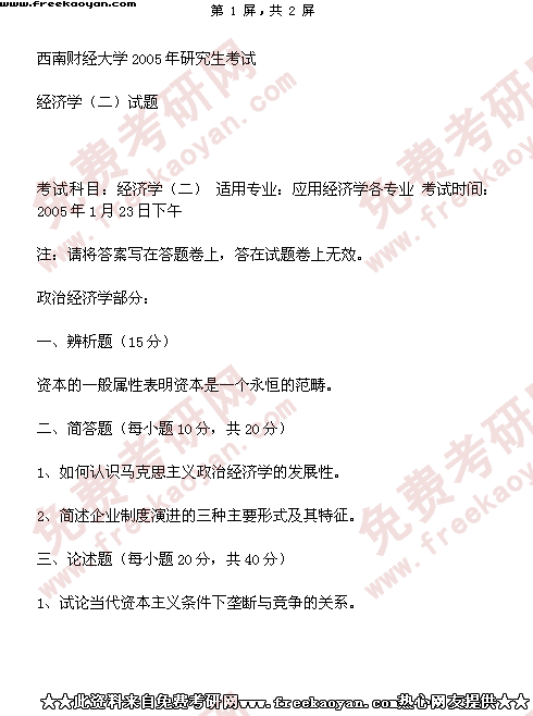 西南财经大学2005年考研真题-西方经济学复试试题(非完整版)