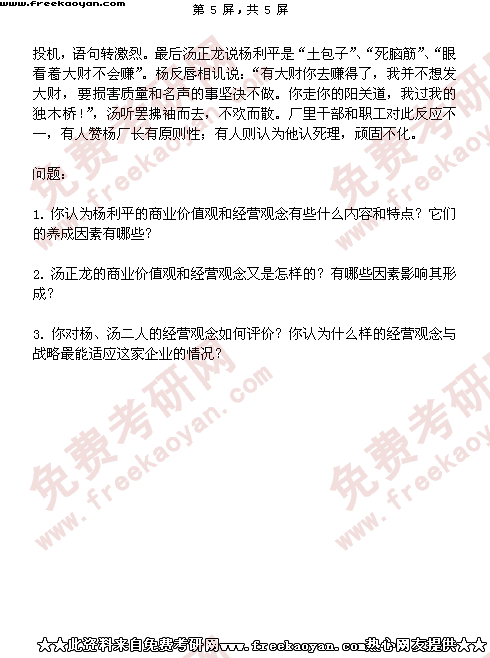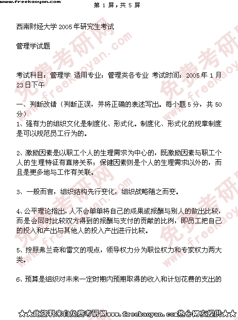 西南财经大学2005年考研真题-企业管理复试试题(非完整版)