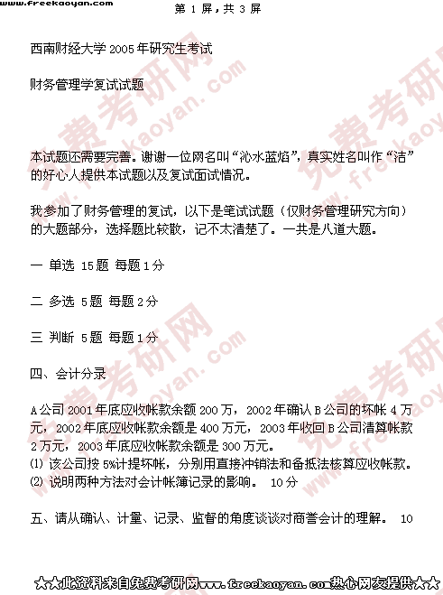 西南财经大学2005年考研真题-会计学复试试题