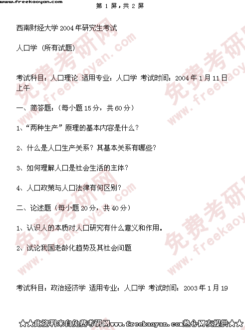 西南财经大学2005年考研真题-金融研究中心复式试题(非完整版)