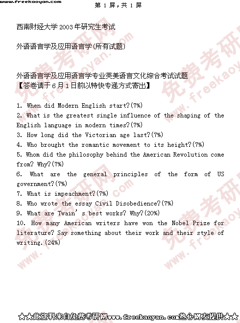 西南财经大学2003年考研真题-外语语言学及应用语言学(所有试题)