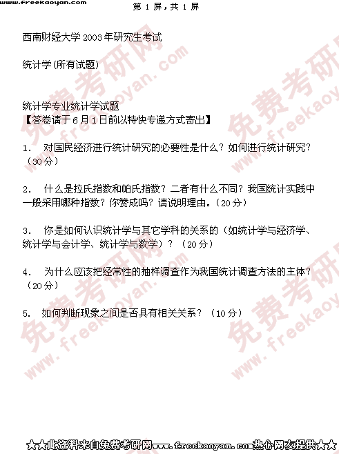 专业课考研经验 本站小编 FreeKaoyan 2018-01-22西南财经大学2003年考研真题-政治经济学(所有试题)