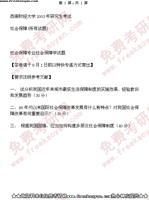 相关话题/考研真题 西南财经大学 试题 社会保障