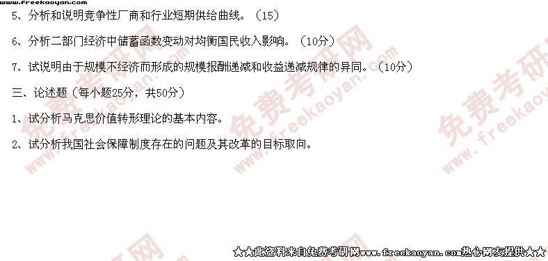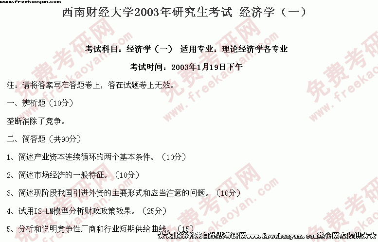 西南财经大学2003年考研真题-西方经济学(所有试题)