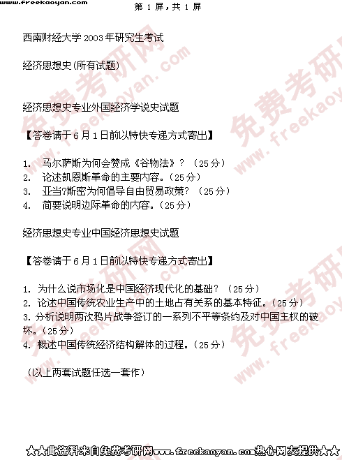 专业课考研经验 本站小编 FreeKaoyan 2018-01-22西南财经大学2003年考研真题-世界经济(所有试题)