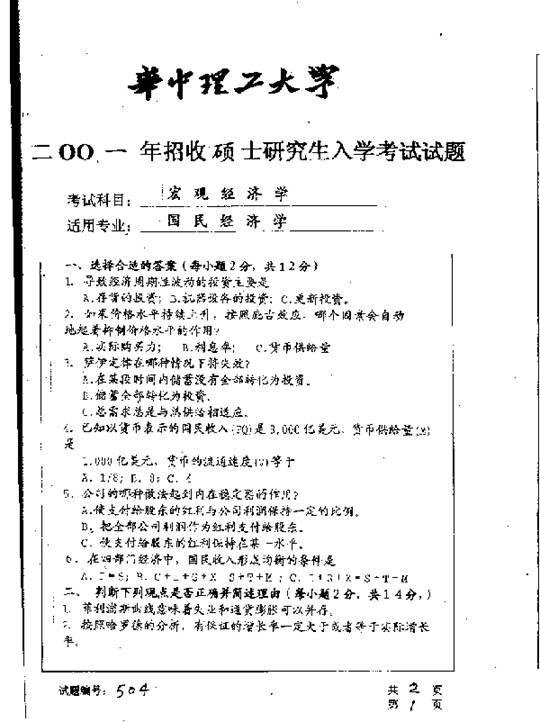 专业课考研经验 本站小编 FreeKaoyan 2018-01-22武汉大学2001年攻读硕士学位研究生入学考试试题考试科目:经济法学 科目代码:555一、解释题(每小题5分,共25分)1,行政性垄断2,市场混淆行为3,破产宣告的申请主义和职权主义4,土地征用与国有化5,纳税环节二、简答题(每小题10分,共40分)1,我国《公司法》的重要修改及其意义。2,产品责任法 ...