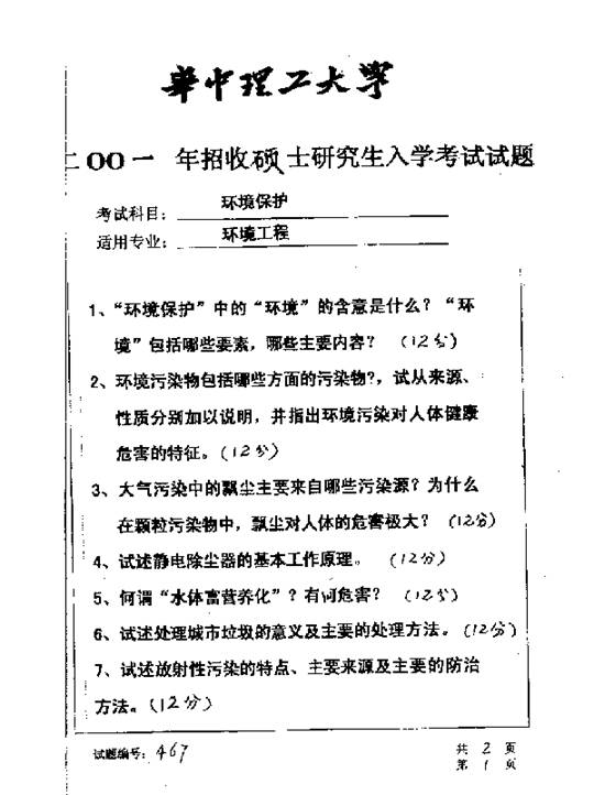 专业课考研经验 本站小编 FreeKaoyan 2018-01-22武汉大学法学院2001年试题考试科目:国际环境资源法 编号:17O 一、翻译并解释:(任选五题,每题4分,共20分.多选的,只按答题顺序计前五题的得分,余下的不再计分。) 1、 Sustainable development 2, The United Nations Environment Pro ...