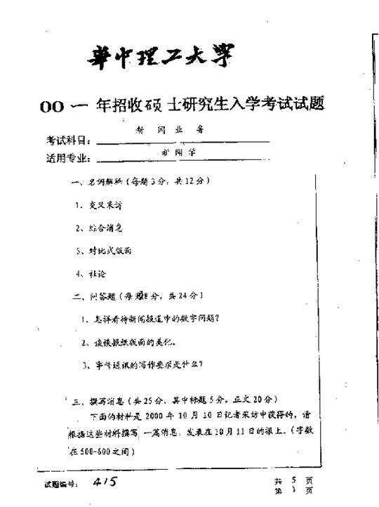 华中科技大学2001年考研真题-新闻业务