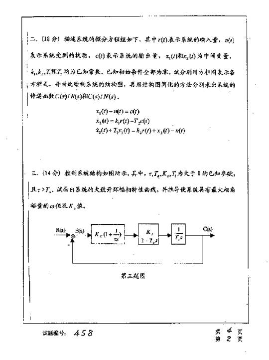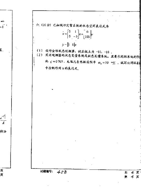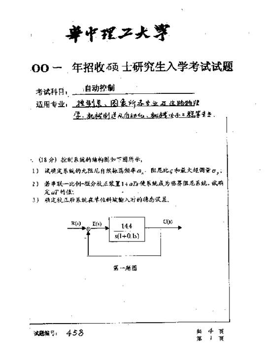华中科技大学2001年考研真题-自动控制