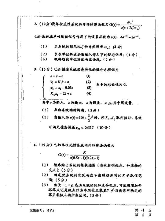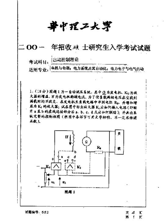 华中科技大学2001年考研真题-自动控制理论