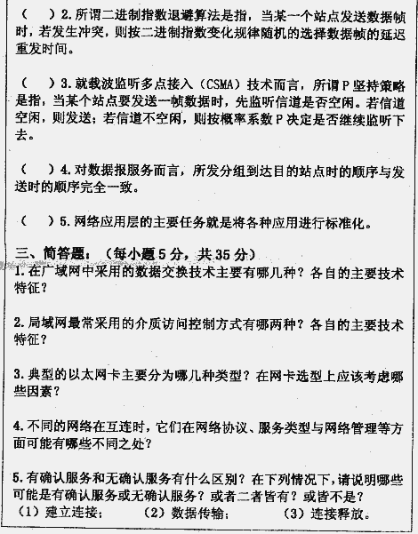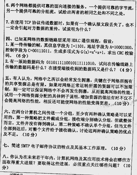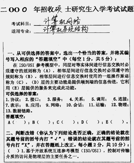 华中科技大学2000年考研真题-计算机网络