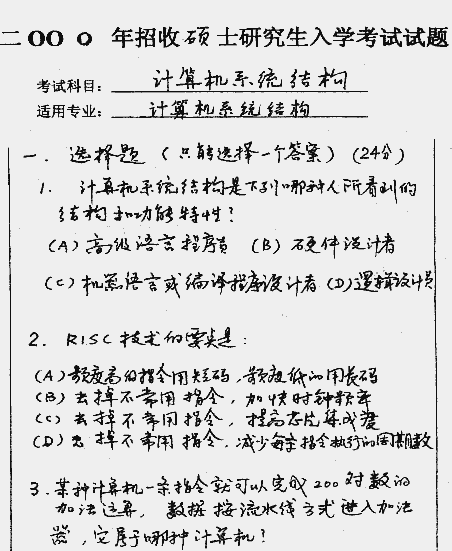 华中科技大学2000年考研真题-计算机系统结构