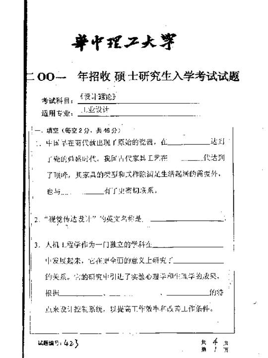 华中科技大学2001年考研真题-设计理论