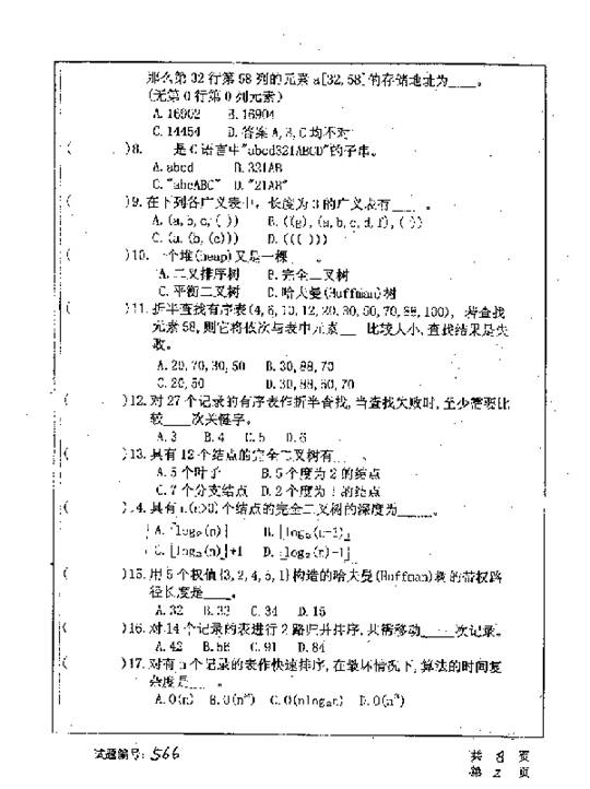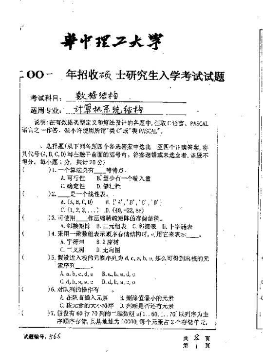 华中科技大学2001年考研真题-数据结构