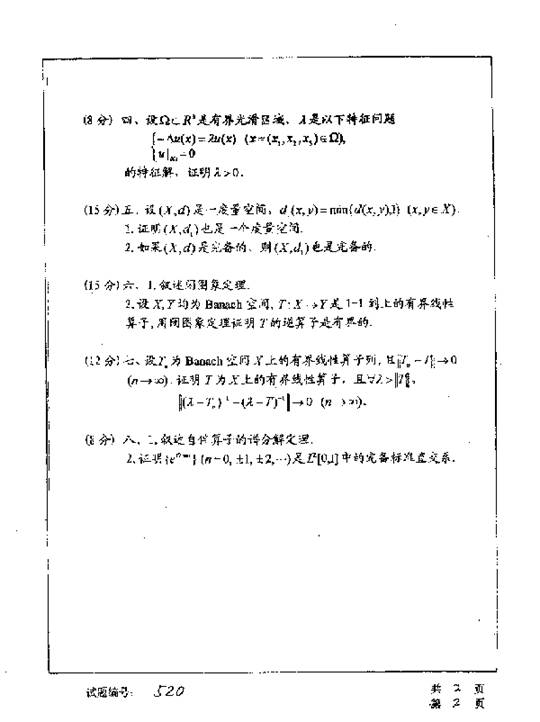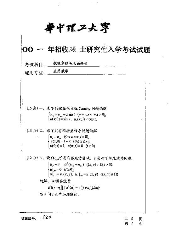华中科技大学2001年考研真题-数理方程与泛函分析