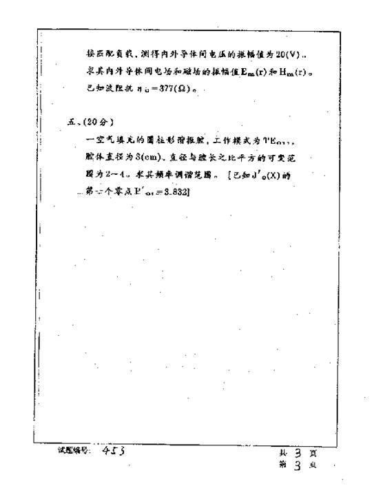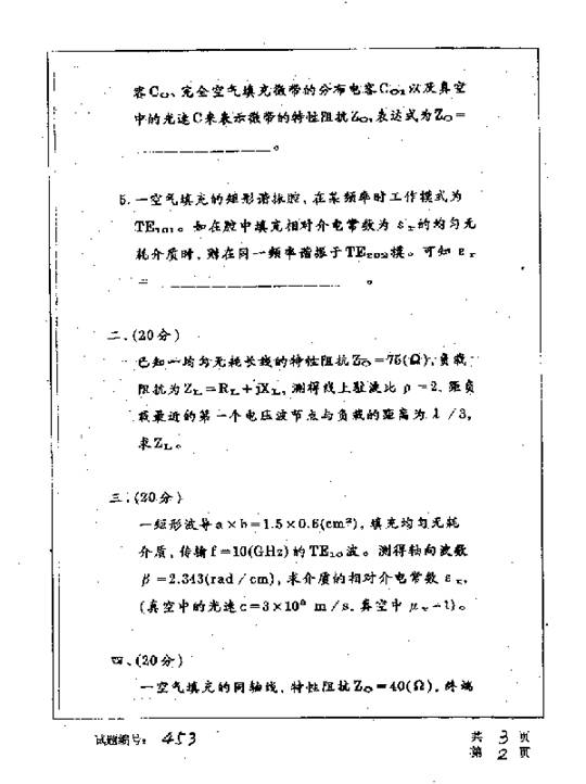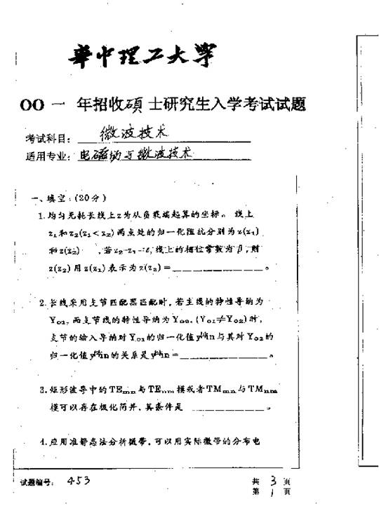 华中科技大学2001年考研真题-微波技术