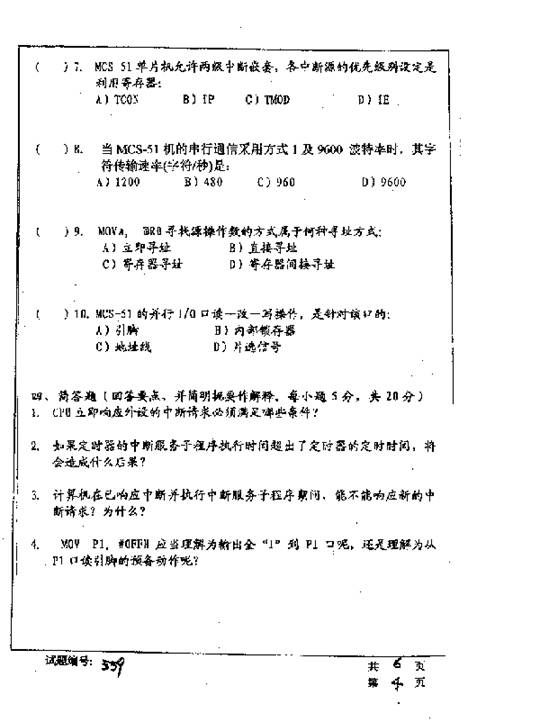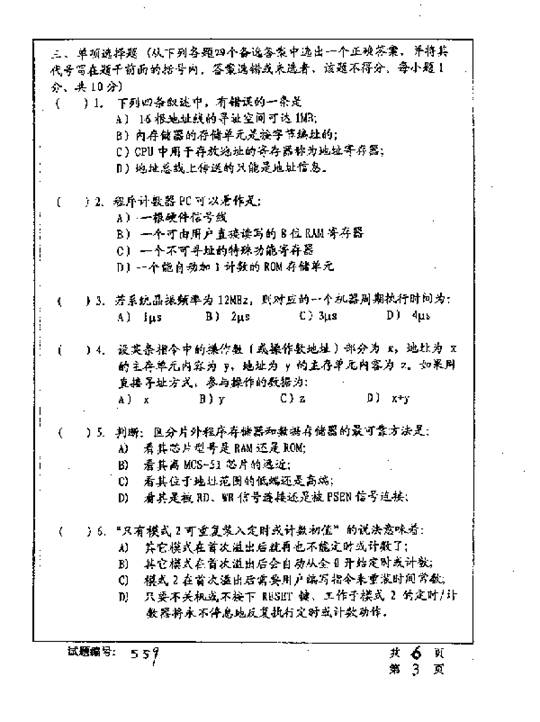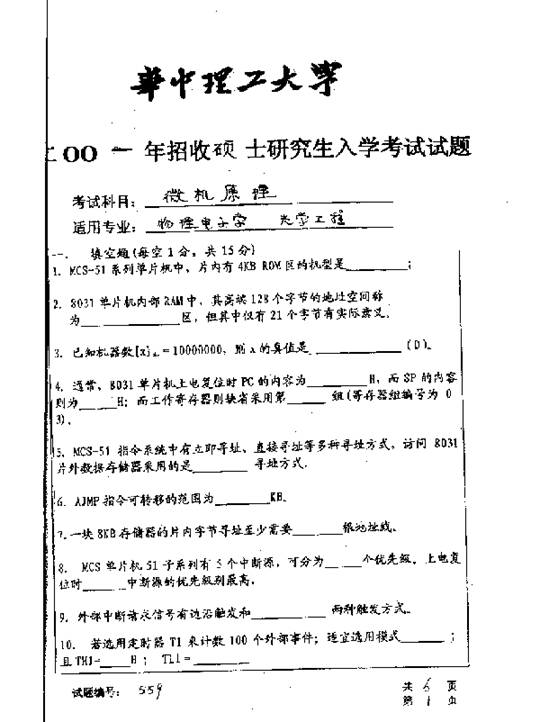 华中科技大学2001年考研真题-微机原理