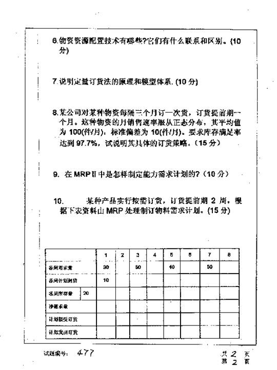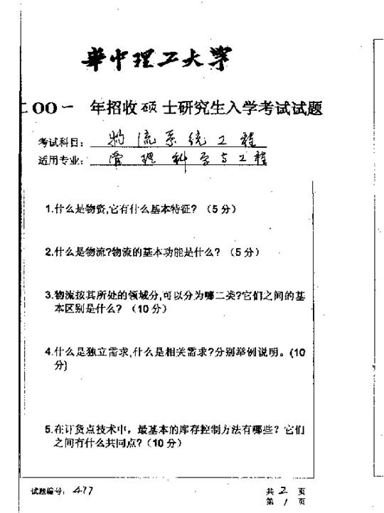 华中科技大学2001年考研真题-物流系统工程