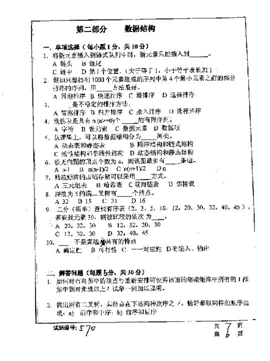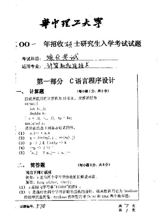 华中科技大学2001年考研真题-计算机应用技术综合考试