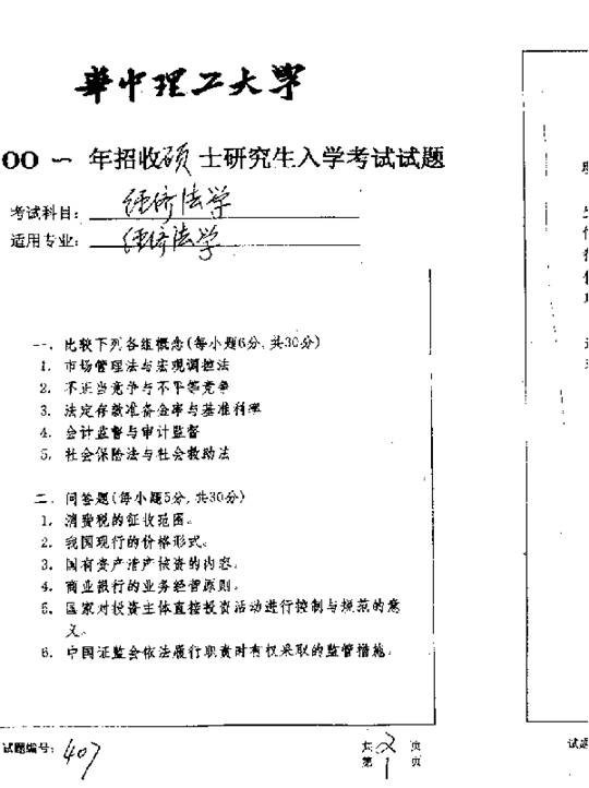 华中科技大学2001年考研真题-经济法学