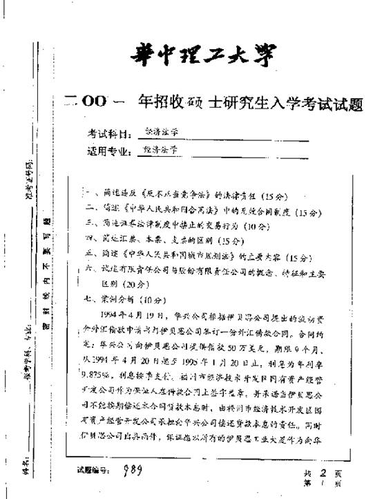 华中科技大学2001年考研真题-经济法学二