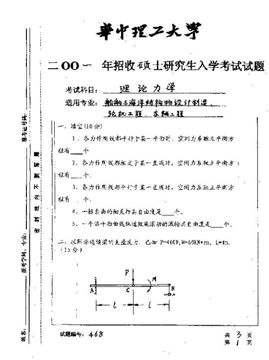 华中科技大学2001年考研真题-理论力学二