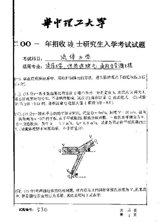 华中科技大学2001年考研真题-流体力学二