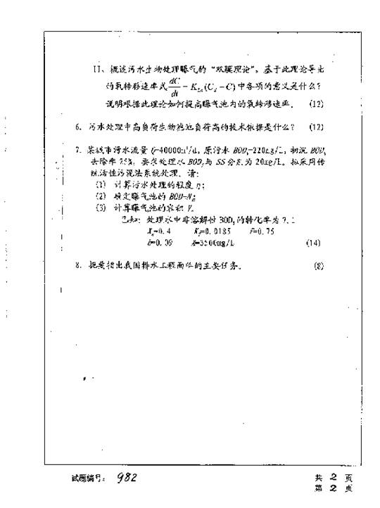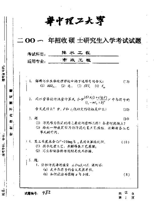 华中科技大学2001年考研真题-排水工程