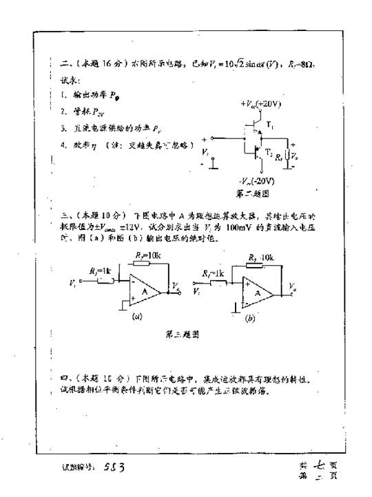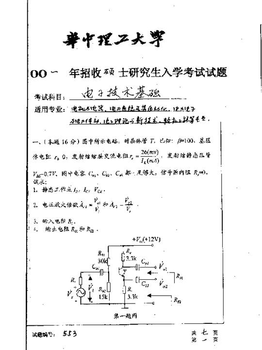 华中科技大学2001年考研真题-电子技术基础二