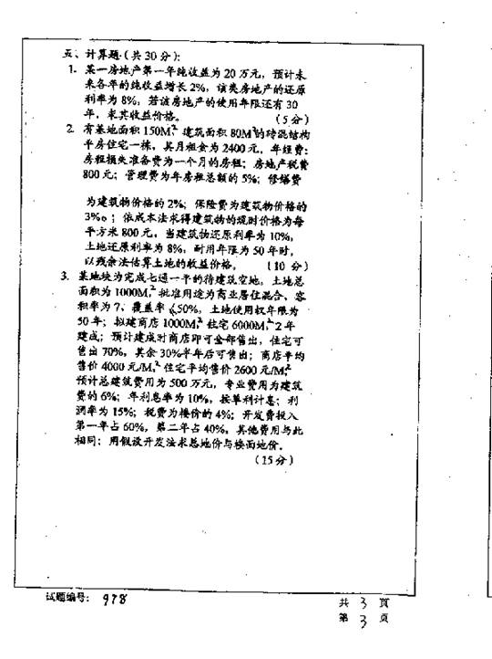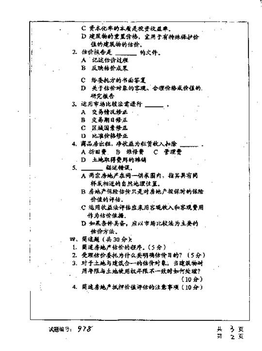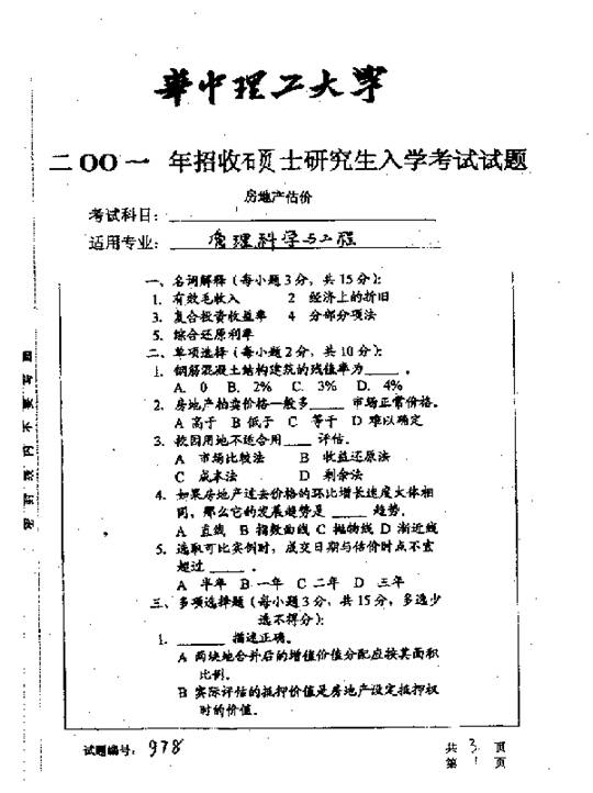 华中科技大学2001年考研真题-房地产估价