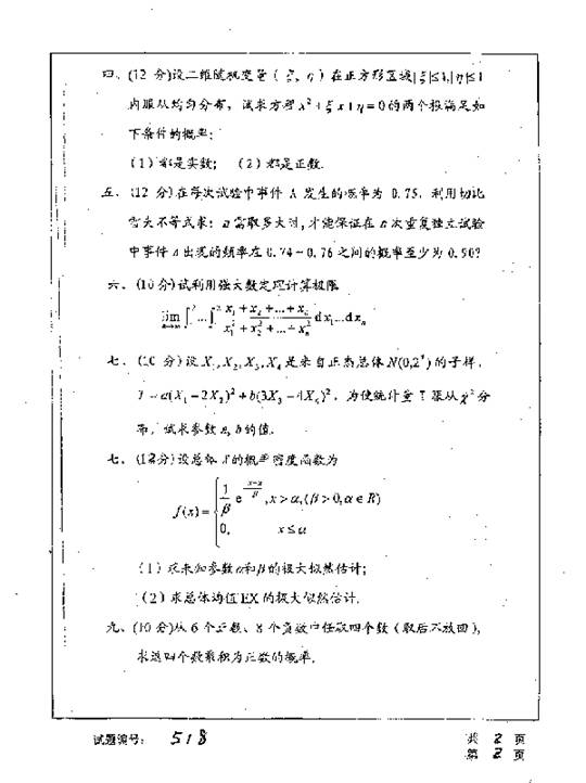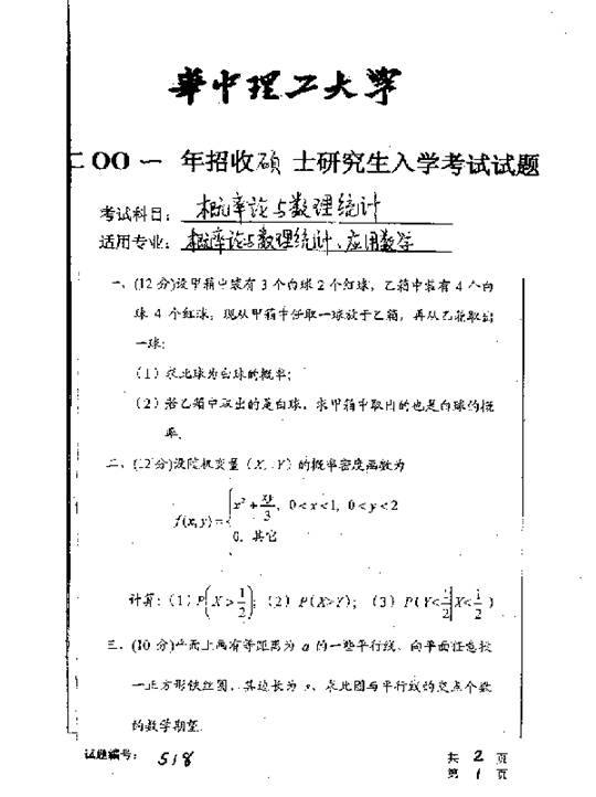 华中科技大学2001年考研真题-概率论与数理统计
