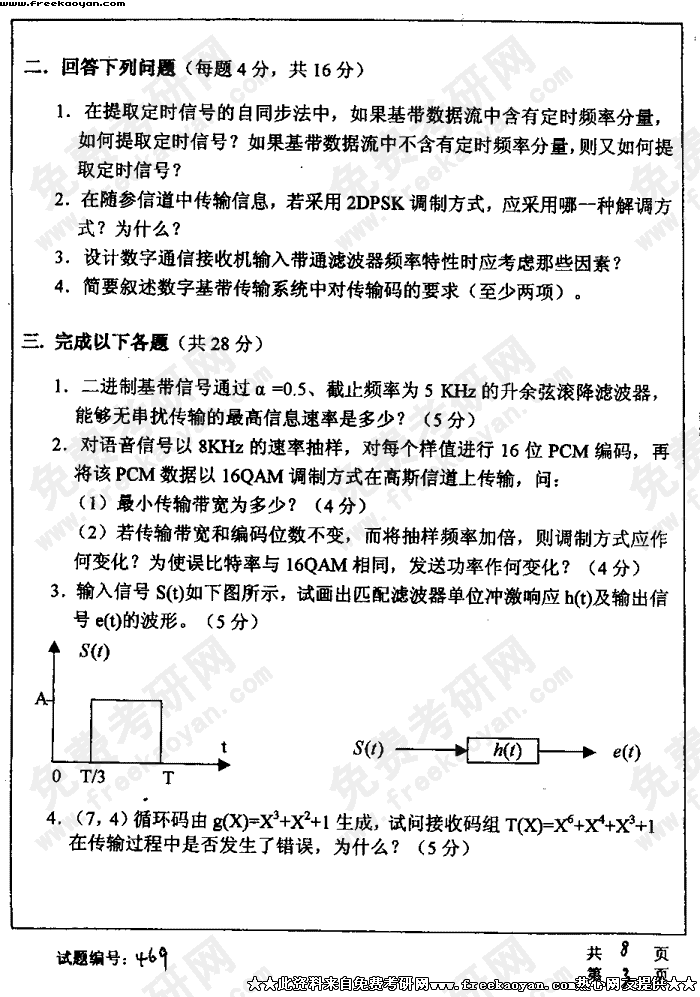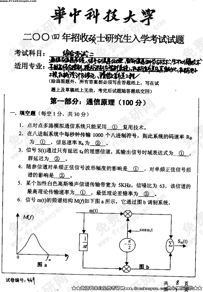 华中科技大学2004年考研真题-综合考试二(通信与信息系统)