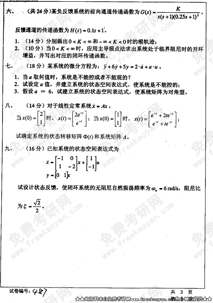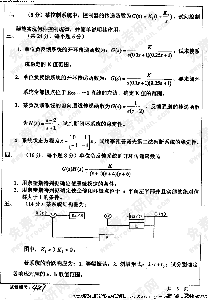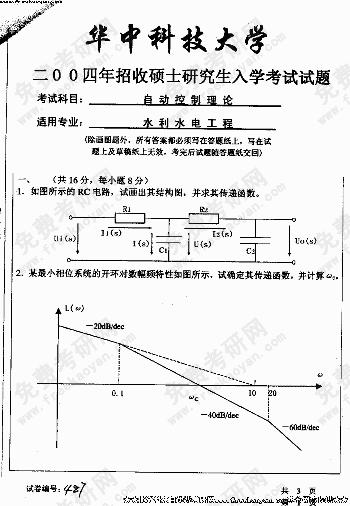 华中科技大学2004年考研真题-综合考试一(自控系所有专业)
