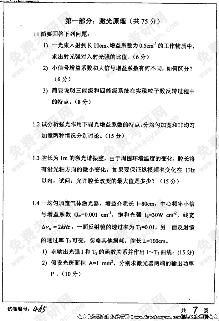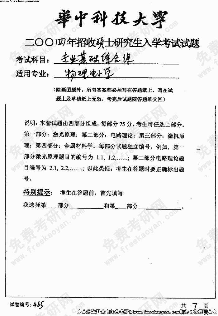 华中科技大学2004年考研真题-专业基础综合题(物理电子学)