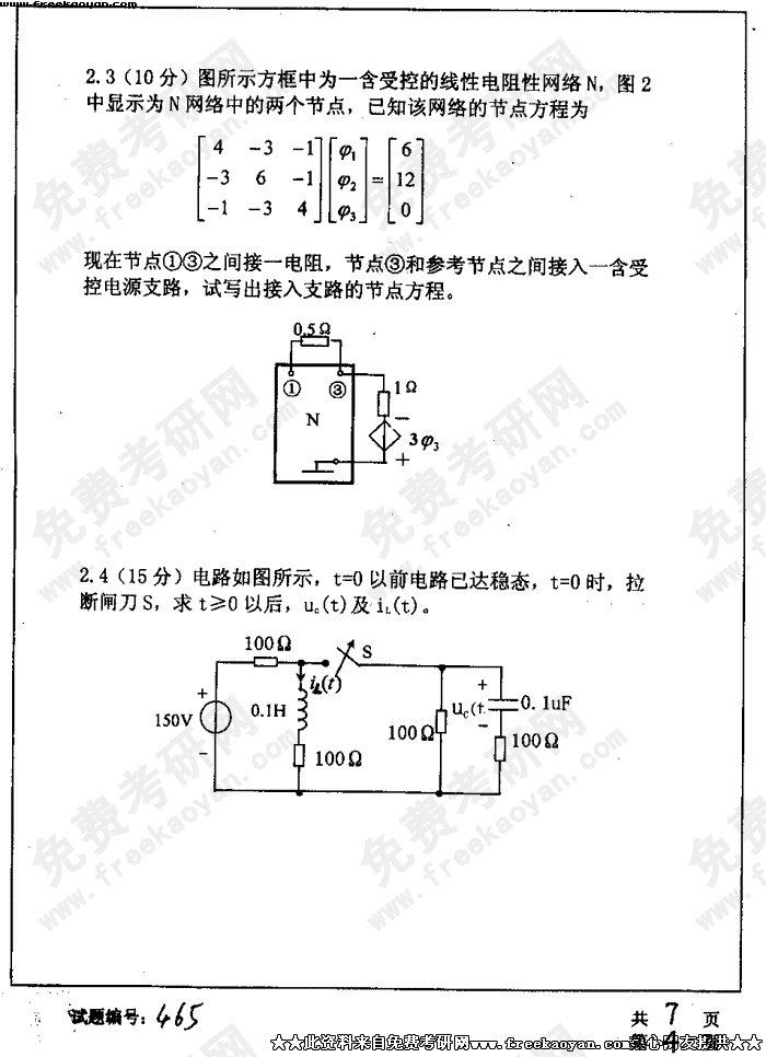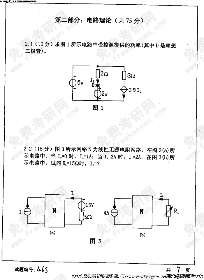 华中科技大学2004年考研真题-综合考试(电路与系统)