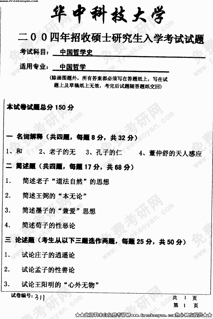 相关话题/考研真题 华中科技大学 试题 中国哲学史