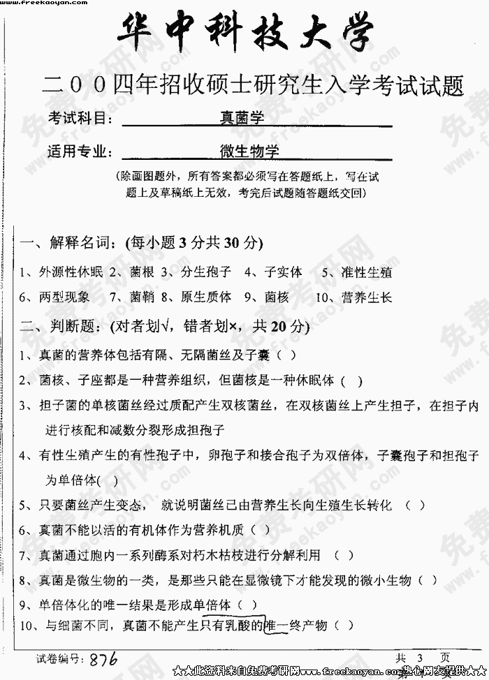 华中科技大学2004年考研真题-综合考试(计算机系统)