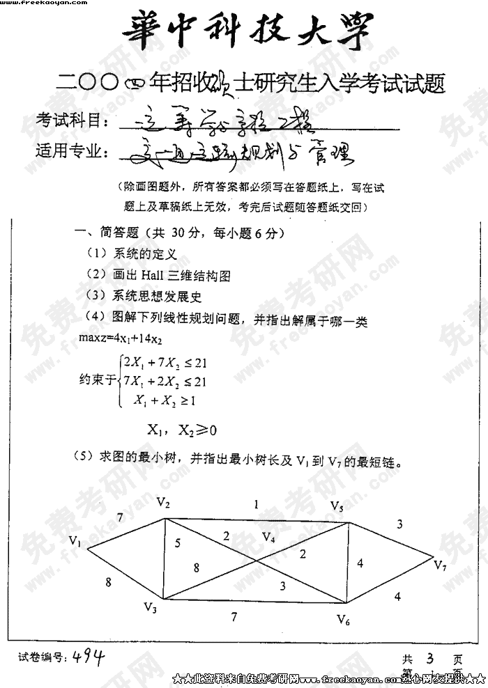 华中科技大学2004年考研真题-专业基础综合题(物理电子学)