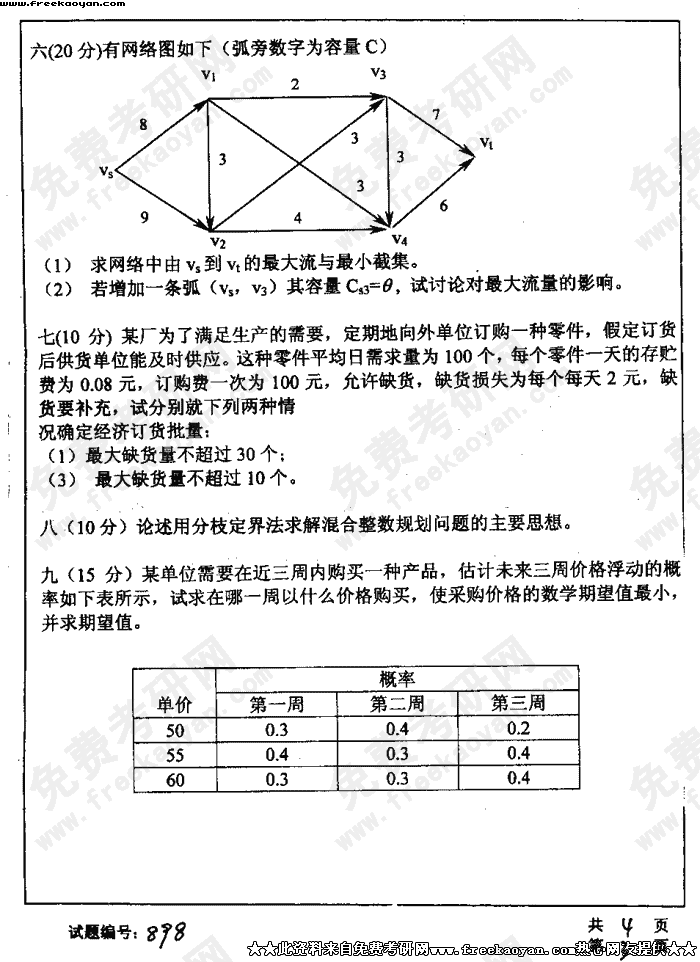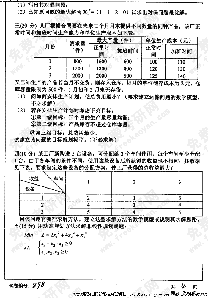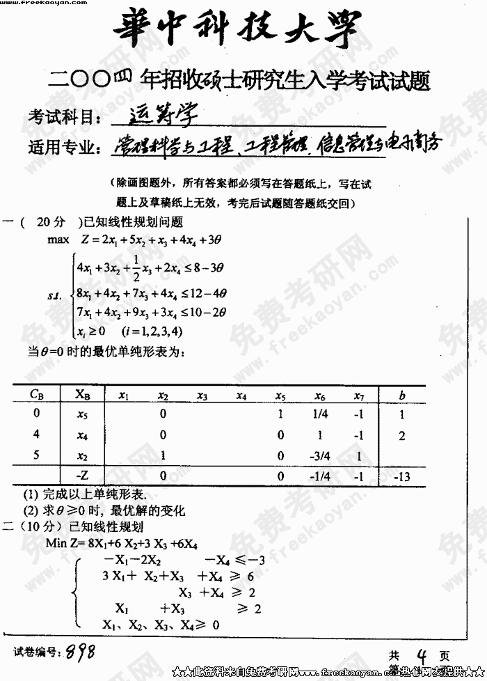 华中科技大学2004年考研真题-运筹学
