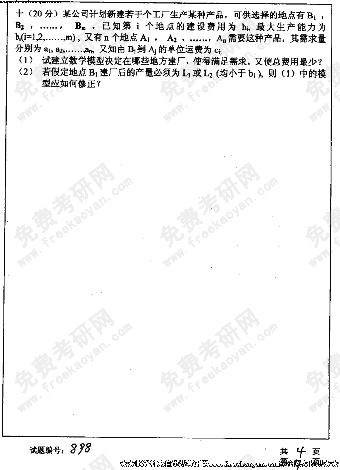 华中科技大学2004年考研真题-运筹学与系统工程