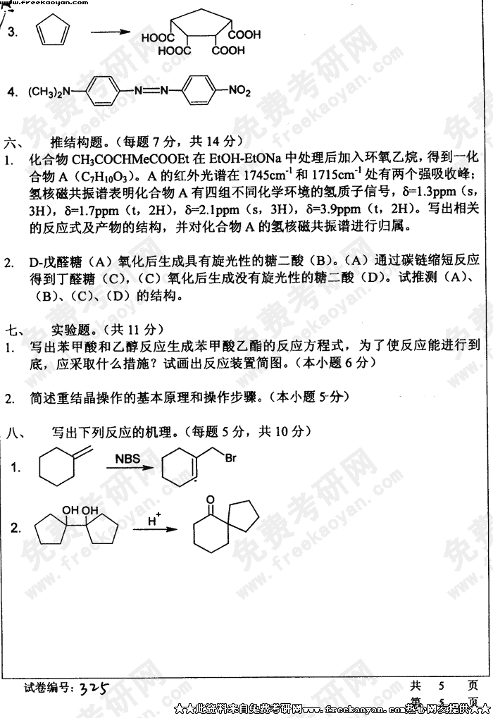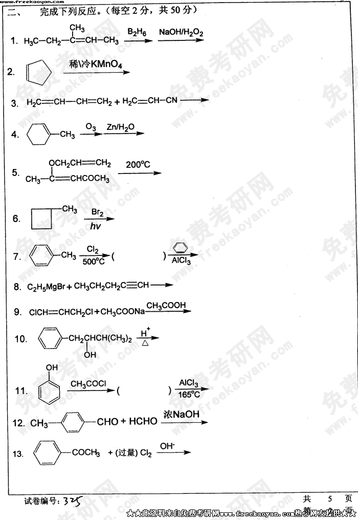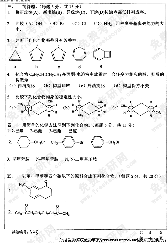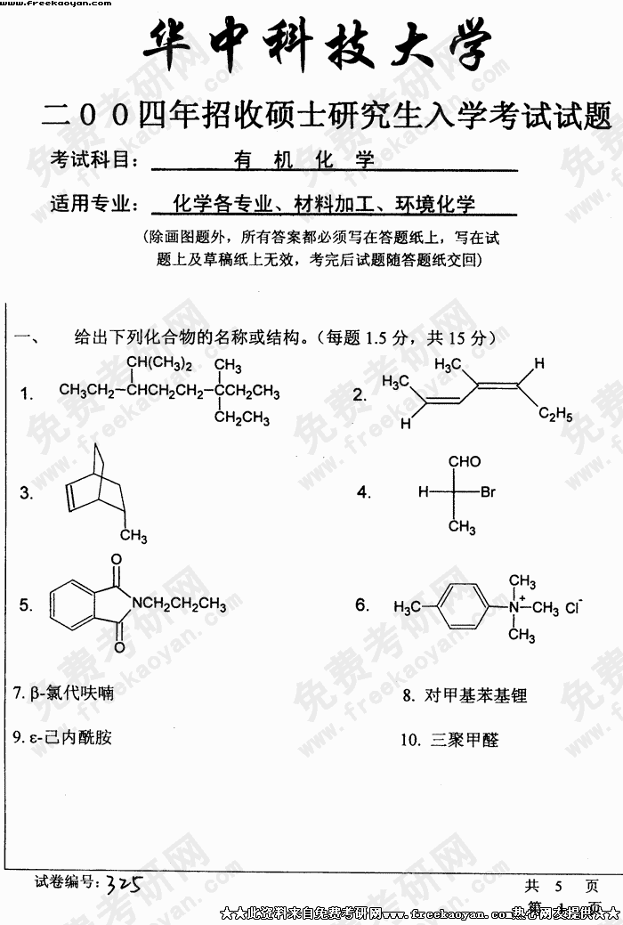 华中科技大学2004年考研真题-有机化学(一)试题