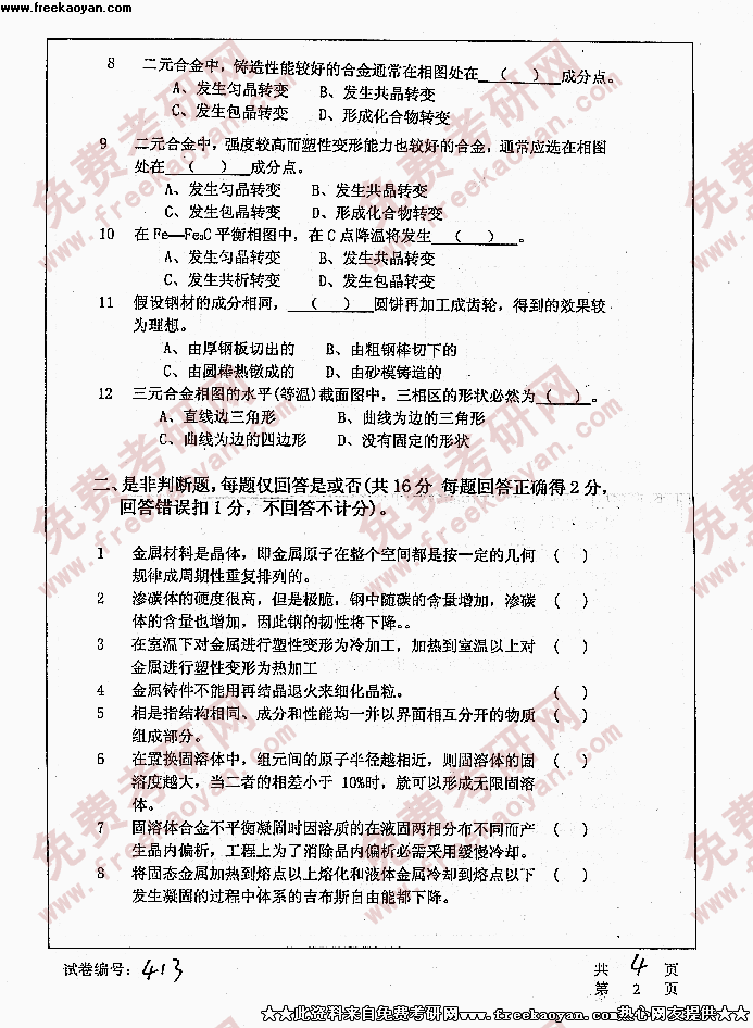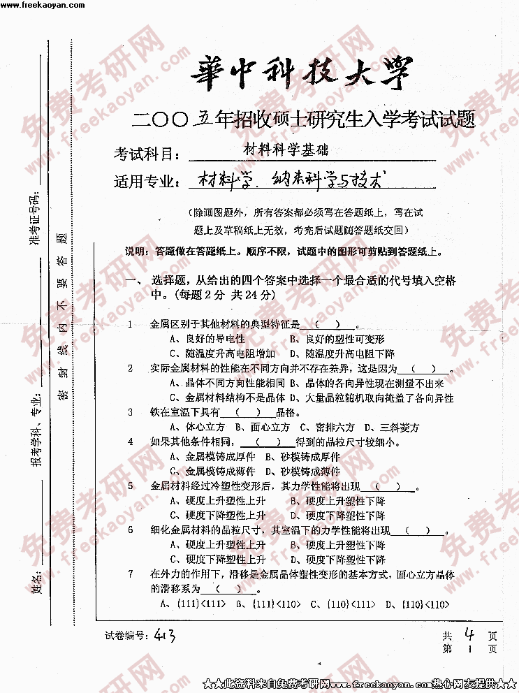华中科技大学2004年考研真题-专业基础综合题(物理电子学)