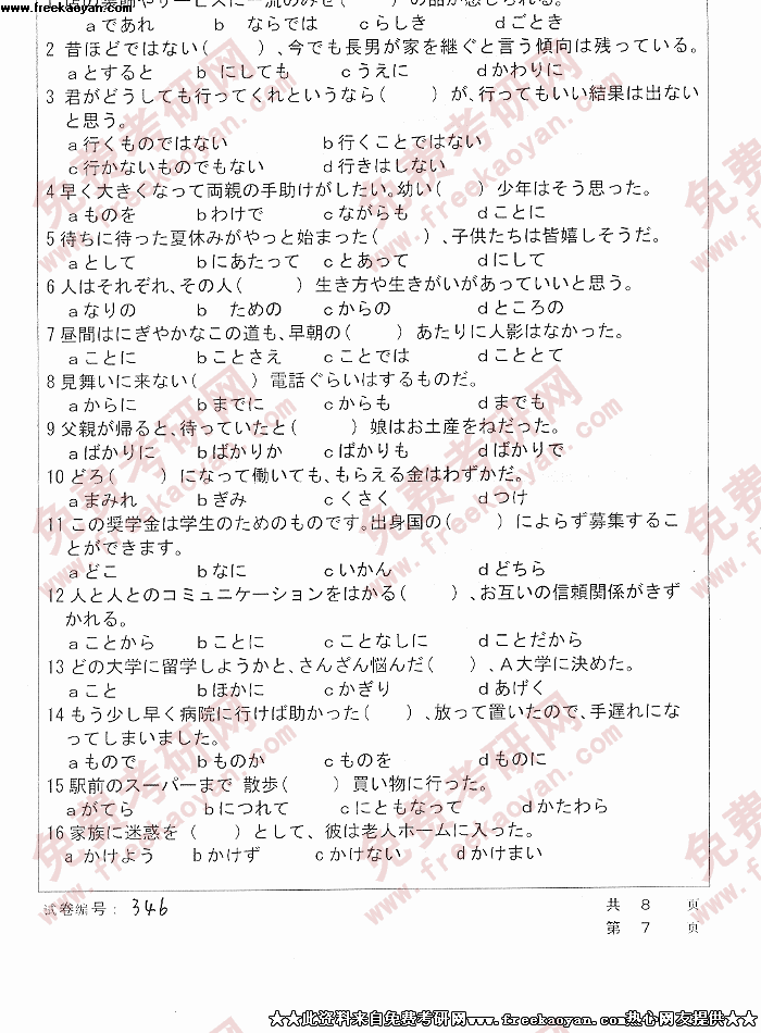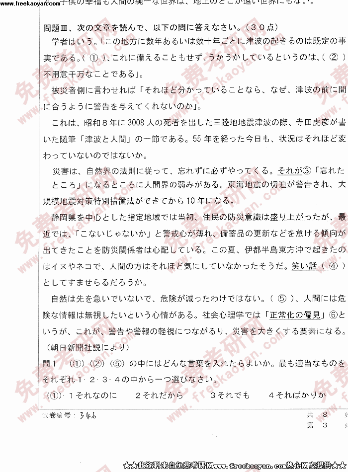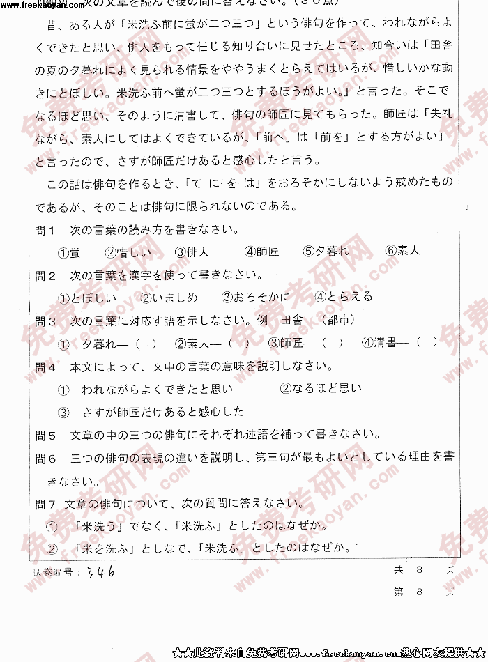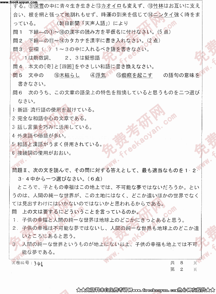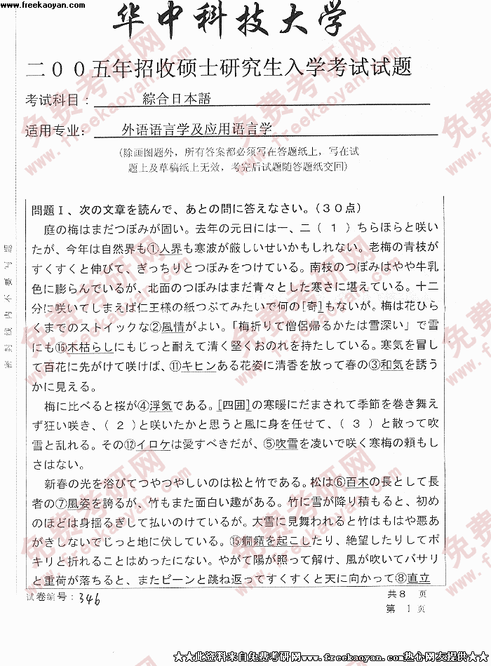 华中科技大学2005年考研真题-综合日本语