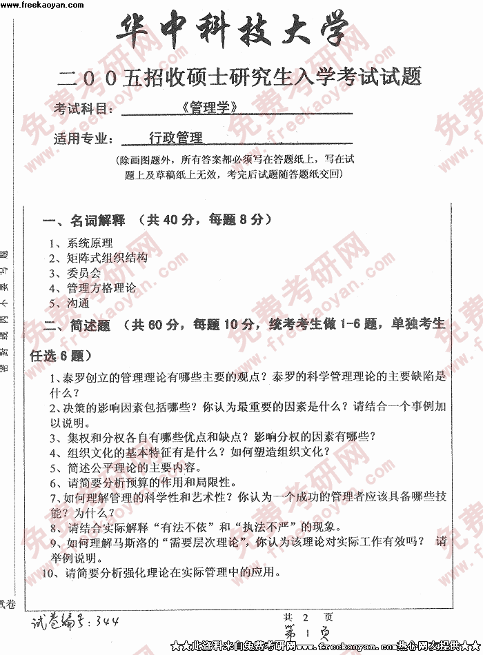 华中科技大学2005年考研真题-数学(物理系各专业)